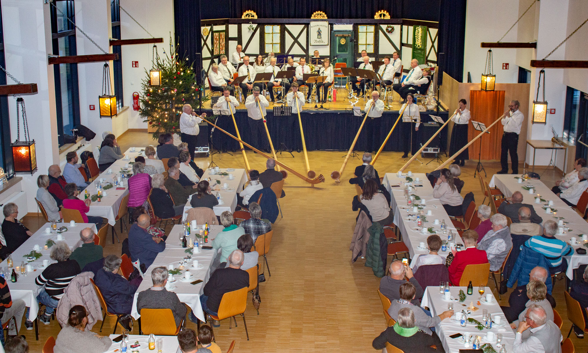 Blasorchester und Alphornbläser begeisterten beim traditionellen Adventskonzert